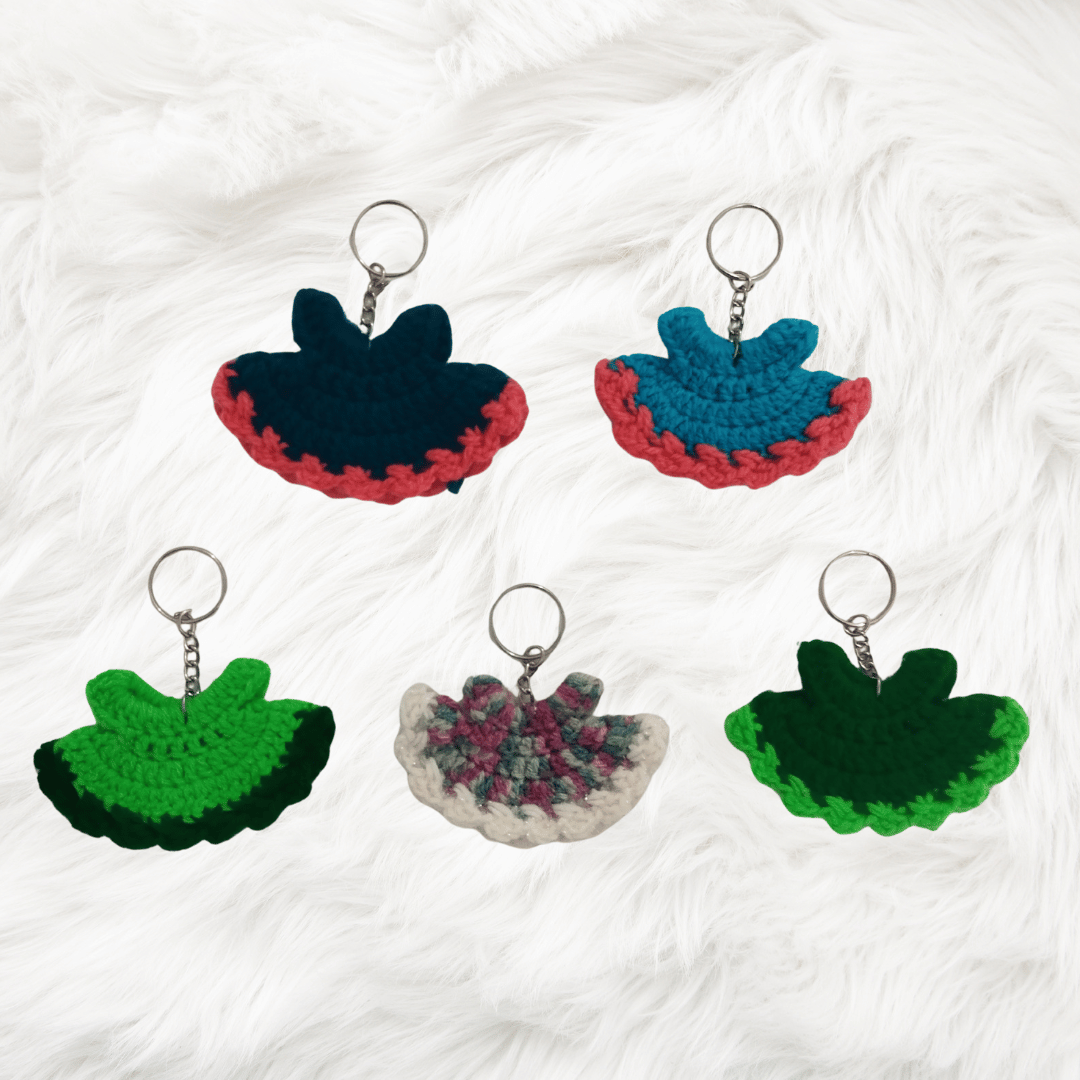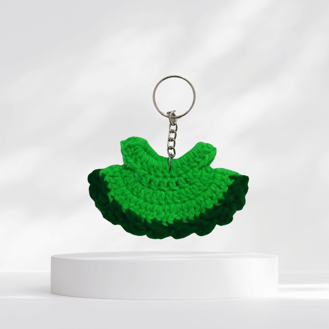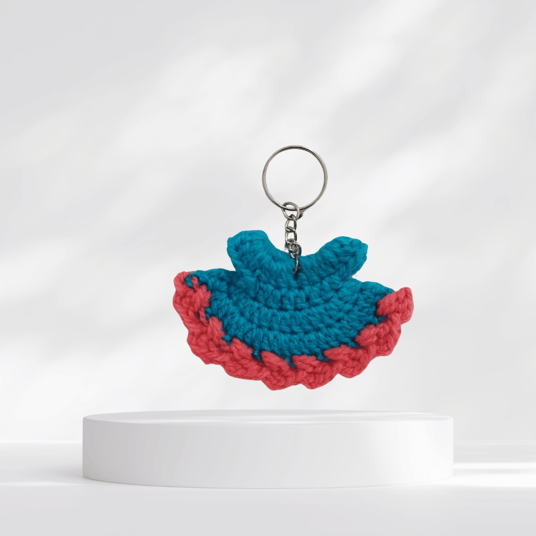 Crochet Keychain Handmade Crochet Dress Appliqué – Miniature Dress Ornament with keychain. Add a touch of handcrafted charm to your projects with these adorable mini crochet dress appliqués. Each piece is carefully hand-crocheted using soft acrylic yarn and available in vibrant, playful color combinations.